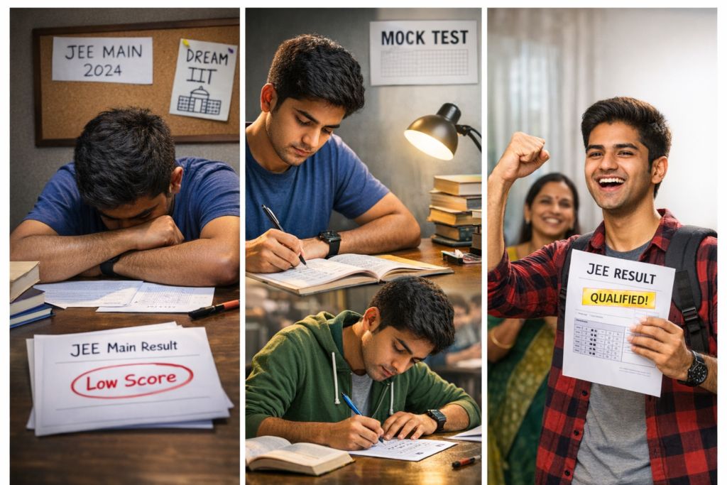 जब परिणाम स्क्रीन पर आता है और उम्मीद से कम अंक दिखते हैं, तो दिल भारी हो जाता है। ऐसा लगता है जैसे मेहनत, सपने और भरोसा—सब एक पल में बिखर गए हों। JEE Main जैसी प्रतिष्ठित परीक्षा में कम स्कोर आना किसी भी छात्र के लिए भावनात्मक झटका हो सकता है। लेकिन सच यह है कि यह अंत नहीं, बल्कि एक नई शुरुआत है।हर साल लाखों विद्यार्थी Joint Entrance Examination – Main देते हैं, और उनमें से कई ऐसे होते हैं जो पहली कोशिश में मनचाहा परिणाम नहीं ला पाते। परंतु इतिहास गवाह है—कई सफल इंजीनियर, वैज्ञानिक और उद्यमी पहली असफलता से ही मजबूत बने। असली परीक्षा केवल प्रश्नपत्र की नहीं, बल्कि धैर्य, आत्मविश्वास और निरंतरता की होती है।